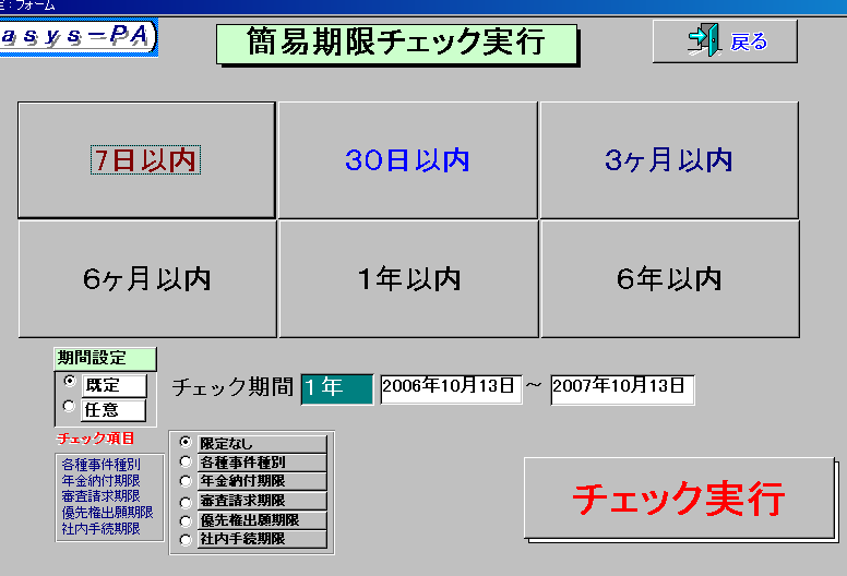 優先権主張期限チェック・審査請求期限チェック・手続期限チェック・被異議申立期限チェック